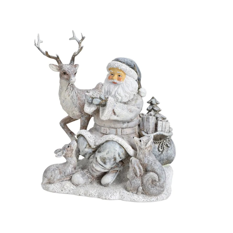 SCENE DE NOEL AVEC CERF ET PERE NOEL 16X19X13CM